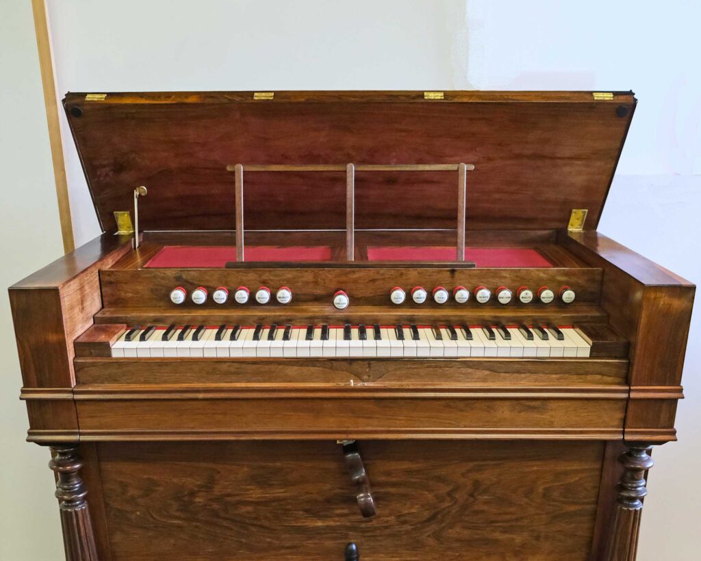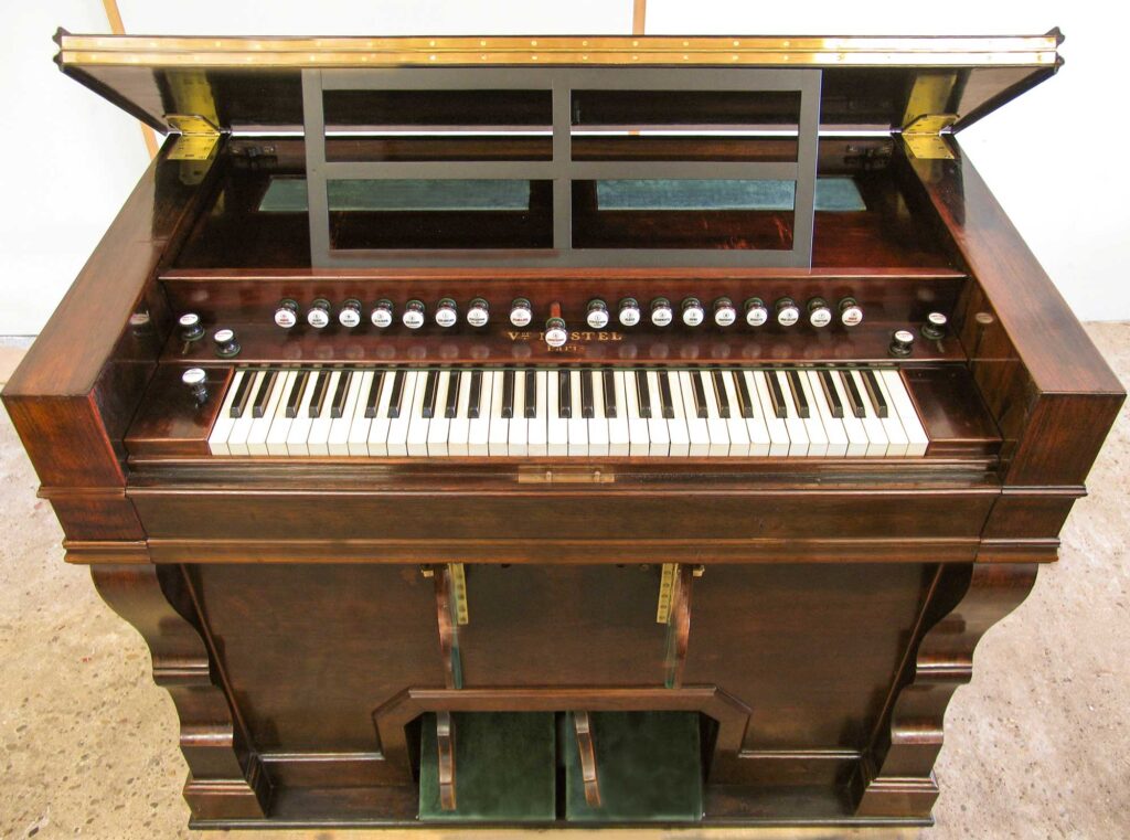 Das häufige verbreitete Pendant, das Saugwindharmonium, restaurieren wir hingegen nur in Ausnahmefällen. Ein Ankauf von Saugwindinstrumenten erfolgt nicht.