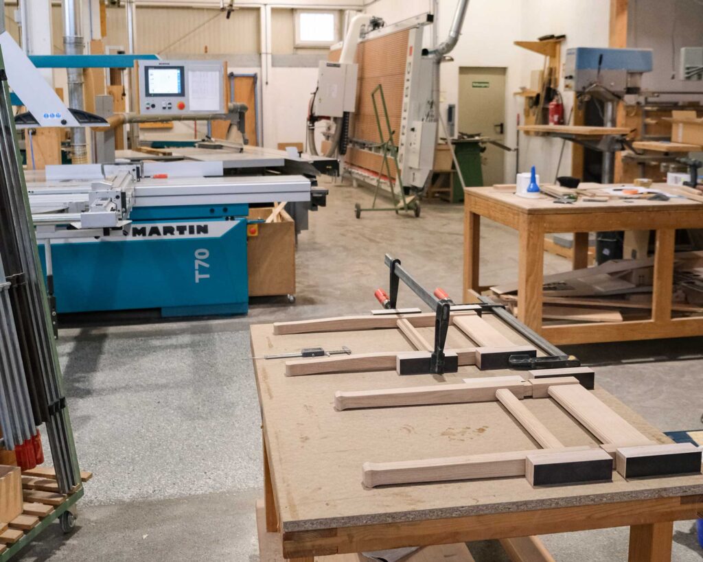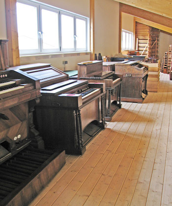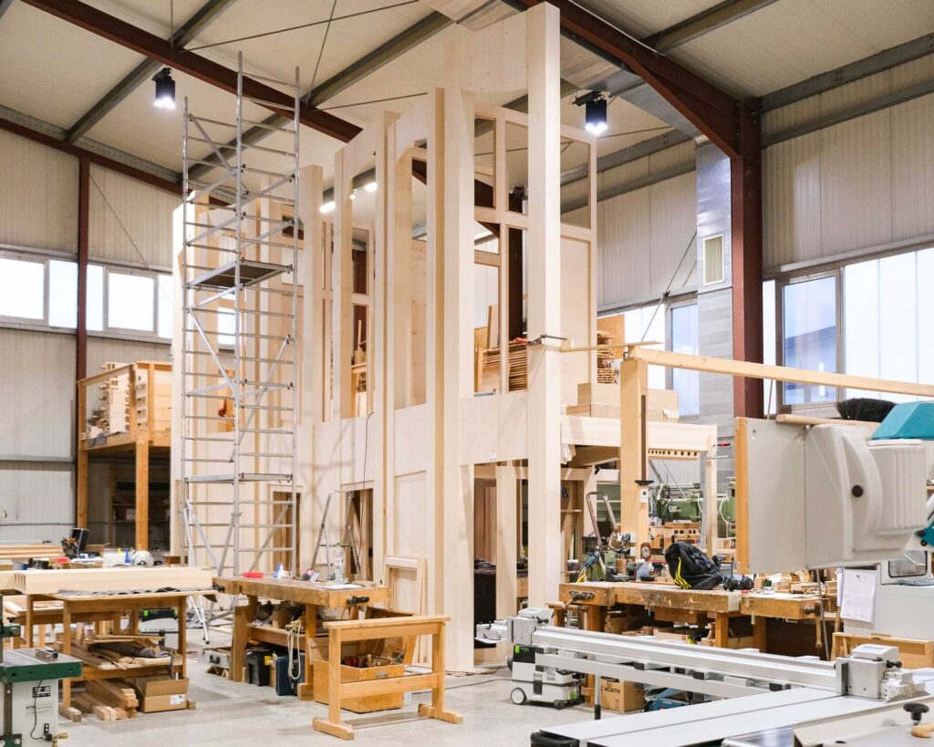 Dies auf dem Gebiet anspruchsvoller Restaurierungen, Instandsetzungen, aber auch bei dem Bau neuer Orgeln, gemäß unserer klanglichen Ideale. Seit 2004 sind wir in Sachsenheim ansässig. Hier ermöglichen uns großzügige Hallen mit Höhen bis zu 10 m viel Raum für spannende Projekte und innovative Entfaltung. 2014 konnten wir auf unserem eigenen Gelände die Haupthalle mit einem zusätzlichen Gebäude mit Lagerflächen für Orgel und Harmonium, Holzlager und Intonationsplätzen erweitern. Ein Team von rund zwölf Personen bildet die wichtigste Grundlage für anspruchsvolle Projekte. Ein moderner Maschinenbereich schließt sich unmittelbar an den großzügigen Montagebereich an. Wichtig ist uns eine hohe Fertigungstiefe aller benötigten Komponenten im eigenen Haus. Seit 2017 sorgt auf unseren großen Dachflächen eine 100 kWp Photovoltaikanlage für eine ressourcenschonende Stromversorgung unserer Gebäude und des Maschinenparks.